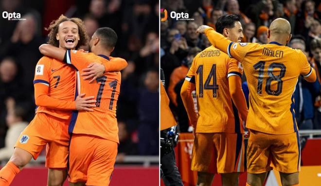 荷兰队史首次,四名来自英超的球员单场比赛分别进球